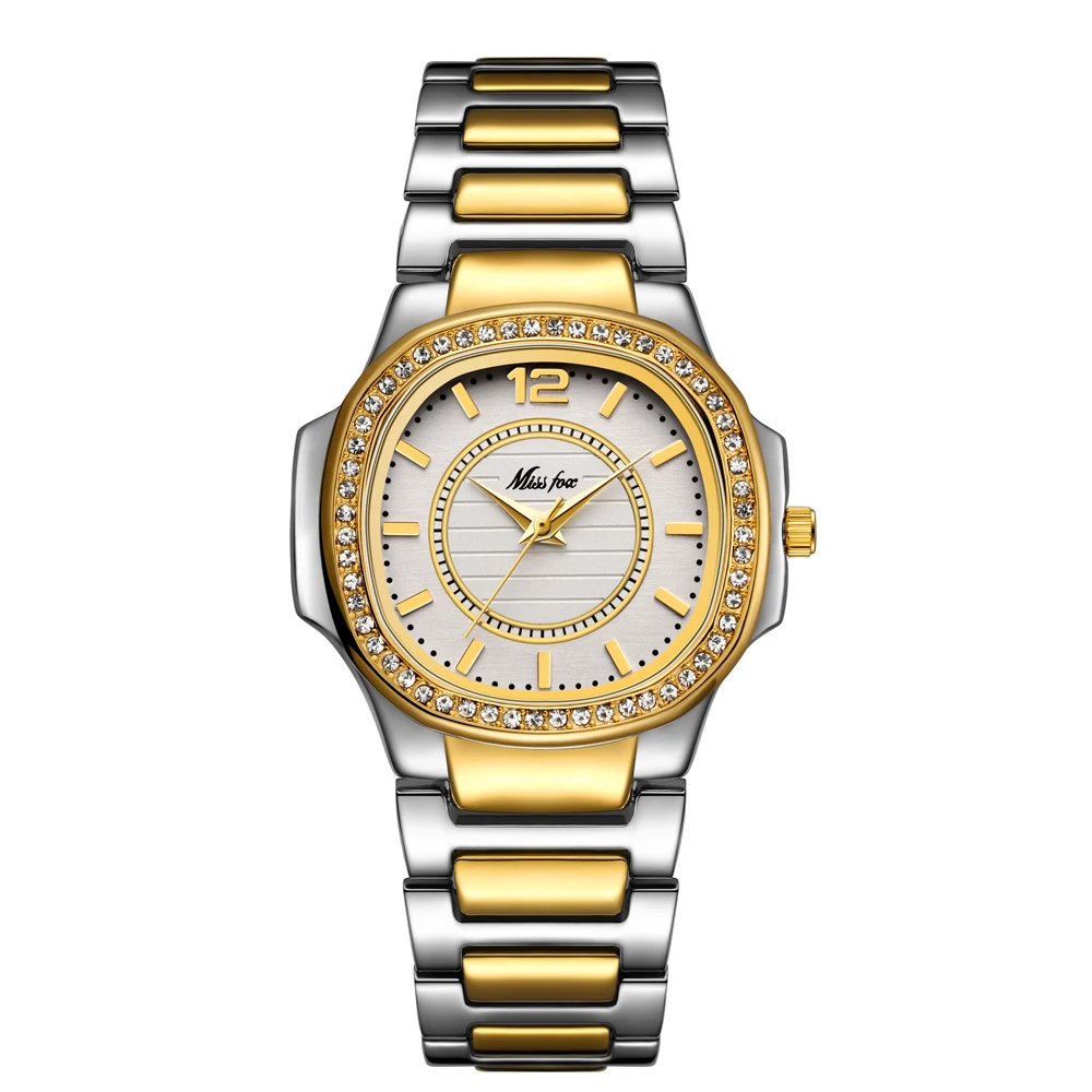 SPECIFICATIONSBand Length: 21.3Band Material Type: STAINLESS STEELBand Width: 20Boxes & Cases Material: PaperBrand Name: MISSFOXCase Material: STAINLESS STEELCase Shape: RoundCase Thickness: 8Certification: NoneChoice: yesClasp Type: Push Button Hidden ClaspColor: Gold/Sliver/Sliver-GoldDial...